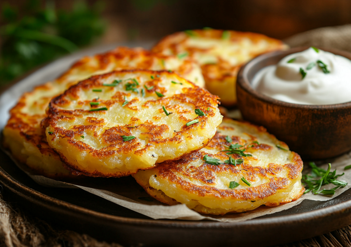 Польские картофельные оладьи делают так: клубни и луковицу трут на терке, полученную смесь оставляют без отжима для сохранения натурального крахмала. В картофельно-луковую смесь вводят яйца, просеянную муку, приправы. Тесто должно получиться по консистенции как сметана. Жарим 3-4 минуты с каждой стороны наши картофельные оладьи и удаляем лишний жир с помощью бумажных полотенец. Все! Секрет польских оладушек из картофеля раскрыт!