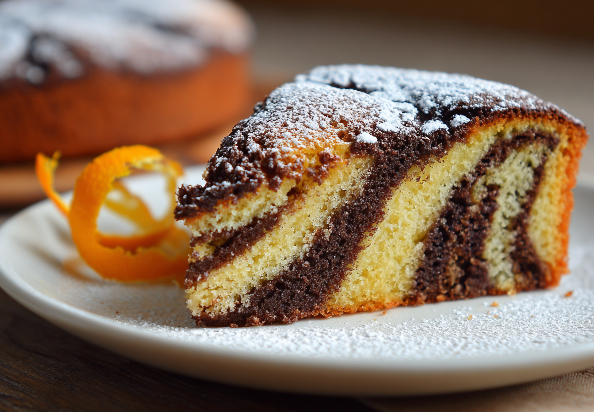 Манник на кефире «Зебра» выглядит как мраморный пирог, но готовится гораздо проще. В этом варианте в тесто добавляется цедра апельсина (1 ч. л.): она дает тонкий аромат и делает вкус необычным, хотя набор продуктов остается доступным.