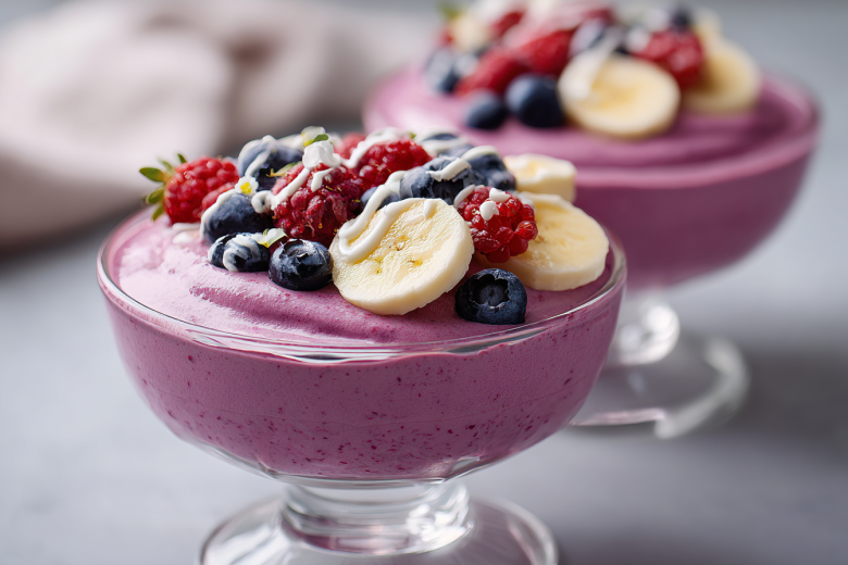 Для постного суфле возьмите 2 банана, 200 г замороженных ягод, 100 мл кокосового молока, 2 ст. л. агар-агара, 50 г меда и щепотку ванили. Разомните бананы вилкой до пюре, смешайте с размороженными ягодами. В кастрюле растворите агар в кокосовом молоке на слабом огне, добавьте мед и ваниль, доведите до кипения и варите 2 минуты. Снимите с огня, влейте в фруктовую массу и взбейте блендером до гладкости. Разлейте по креманкам и поставьте в холодильник на 1 час. Получится яркое постное суфле с фруктовой ноткой, всего 120 ккал на порцию.
