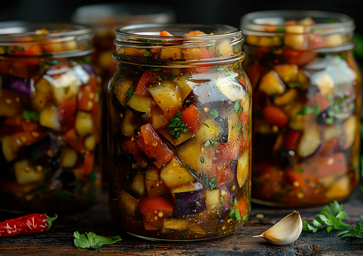 Татарская кухня славится своими сытными пирогами, но и заготовки на зиму в ней занимают важное место. Татарский салат с баклажанами — это густая, острая закуска в томатном соусе, которая отлично хранится и идеальна в качестве дополнения к мясу или простому гарниру зимой.