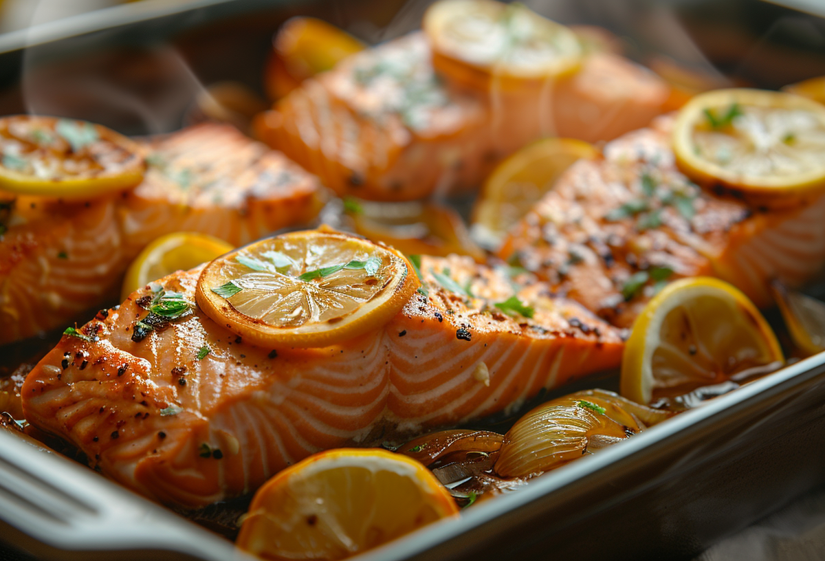 Накрыть форму фольгой и поставить в духовку, разогретую до 180°C. Запекать 25–30 минут, затем аккуратно снять фольгу и подержать еще 5–7 минут, чтобы рыба покрылась аппетитной корочкой.
