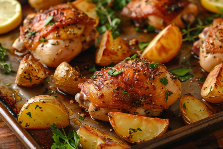 Лимонная кислота слегка размягчит мясо, а травы создадут ароматную корочку. Выкладывайте кусочки на противень кожицей вверх и запекайте 35-40 минут. Подавать такую курицу лучше всего с запеченным картофелем или свежим салатом. Легкое, ароматное и очень уютное блюдо готово!