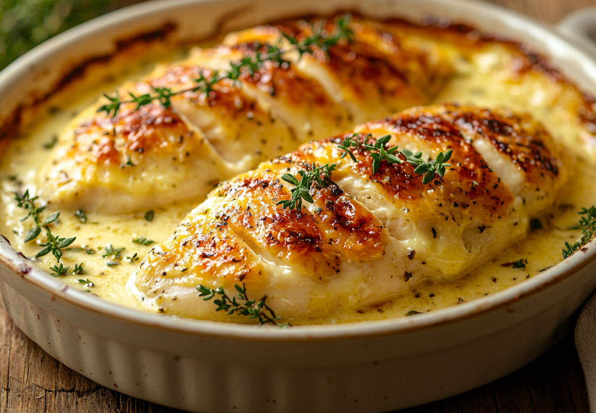 Устроим праздник живота — приготовим самую сочную курицу в духовке! Берем два филе и делаем перпендикулярные надрезы — как будто рисуем решеточку. Теперь волшебный маринад: в 200 мл густых сливок размешиваем две ложки дижонской горчицы, давим два зубчика чеснока, кидаем щепотку сладкой паприки и веточки свежего тимьяна.