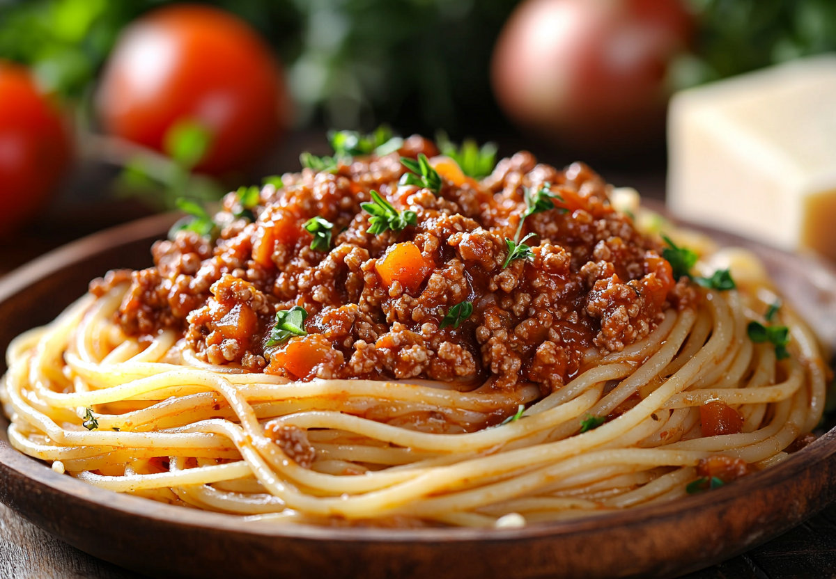 Классические спагетти болоньезе подаются горячими и идеально подходят как для семейного обеда, так и для уютного ужина.