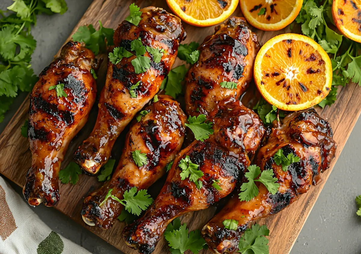 Тщательно промойте голени индейки под проточной водой, удалите остатки перьев, если они есть, и обсушите бумажными полотенцами, чтобы мясо лучше схватилось. Апельсин вымойте щеткой — кожуру используем целиком, и нарежьте его тонкими дольками для яркого цитрусового акцента. В небольшой миске взбейте мед с соевым соусом до гладкой смеси; подойдет любой мед, например гречишный, он придаст насыщенный вкус.