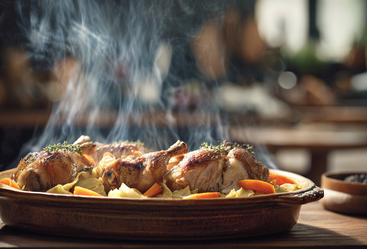 Этот рецепт сочного и ароматного кролика в духовке требует минимум активных действий — основную работу выполняет температура, превращая простые ингредиенты в изысканное блюдо с насыщенным вкусом и тающей текстурой.