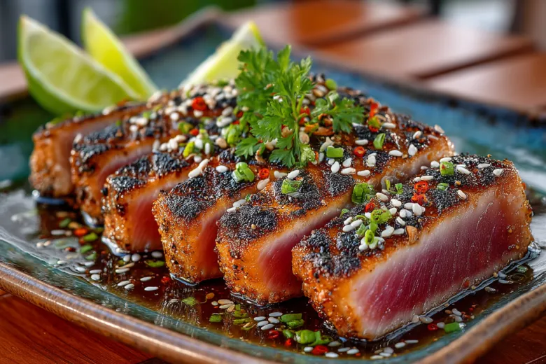 Вот как приготовить стейк из тунца, рецепт для вкусного ужина, так, чтобы гости переспрашивали рецепт снова и снова. Подайте с ломтиком лайма и свежей зеленью — и весенний вечер удался.