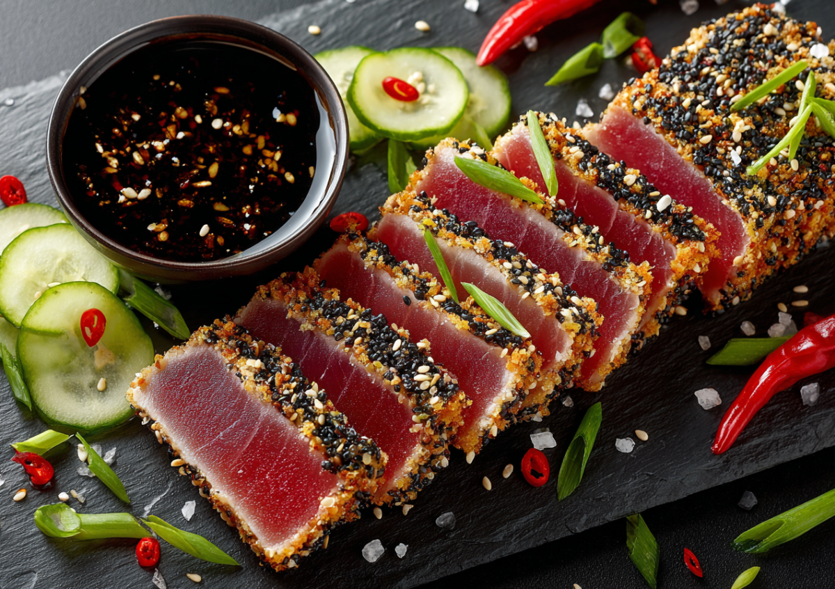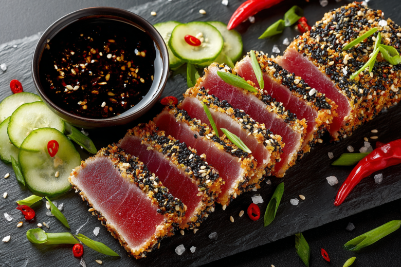 Стейк из тунца в азиатском стиле: соус и кунжутная корочка Стейк из тунца в азиатском стиле: соус и кунжутная корочка Фото: Создано ИИ/NEWS.ru