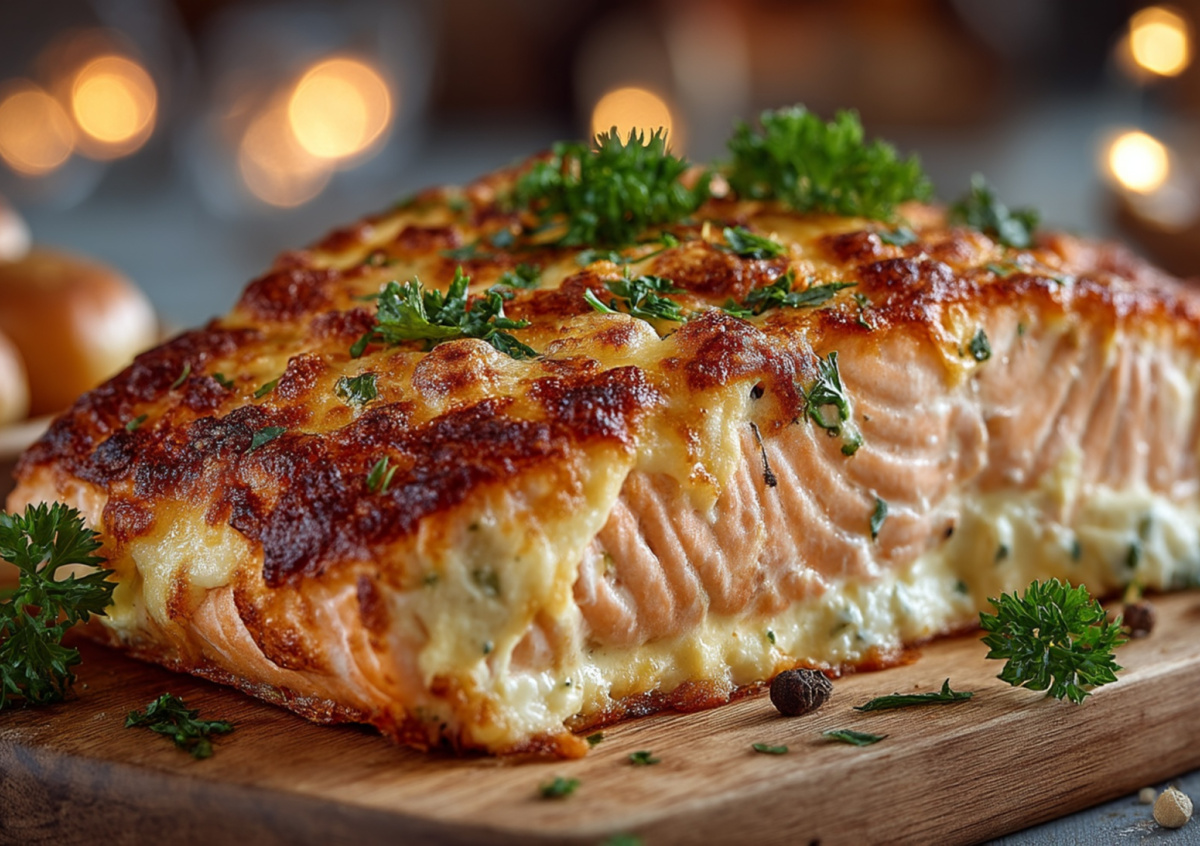 Возьмите 600 г филе горбуши, 4 столовые ложки качественного майонеза (не салатного!), 1 столовую ложку сливок 20% жирности, 150 г твердого сыра (лучше пармезан или старый чеддер), 3 зубчика чеснока, половину чайной ложки копченой паприки, щепотку белого перца и свежую петрушку. Смешайте майонез со сливками, давленым чесноком и специями — сливки делают корочку нежнее и предотвращают растрескивание при запекании.