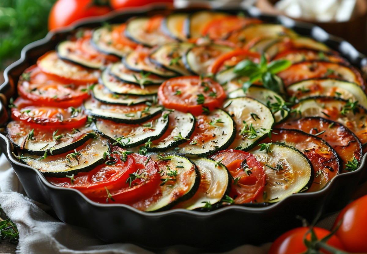 Основу запеканки составляет «подстилка» из сочных овощей. 2 молодых кабачка и 3 крупных помидора нарежьте тонкими кружками одинаковой толщины. Выложите их в форму веером, чередуя и слегка перекрывая друг друга, как черепицу. Посолите, поперчите, сбрызните оливковым маслом и отправьте в духовку при 200 градусах на 20 минут — овощи должны немного подвялиться. Тем временем смешайте 4 яйца с 100 г сметаны, зубчиком чеснока и горстью мелко нарубленной зелени укропа. Достаньте форму с овощами и равномерно залейте их яичной смесью. Сверху разломайте руками 100 г мягкого сыра типа феты или брынзы — его соленые крошки создадут потрясающие вкусовые акценты. Верните в духовку еще на 20 минут до румяной корочки. Подавайте эту запеканку теплой, чтобы ощутить контраст нежного яичного крема и тающих во рту овощей.