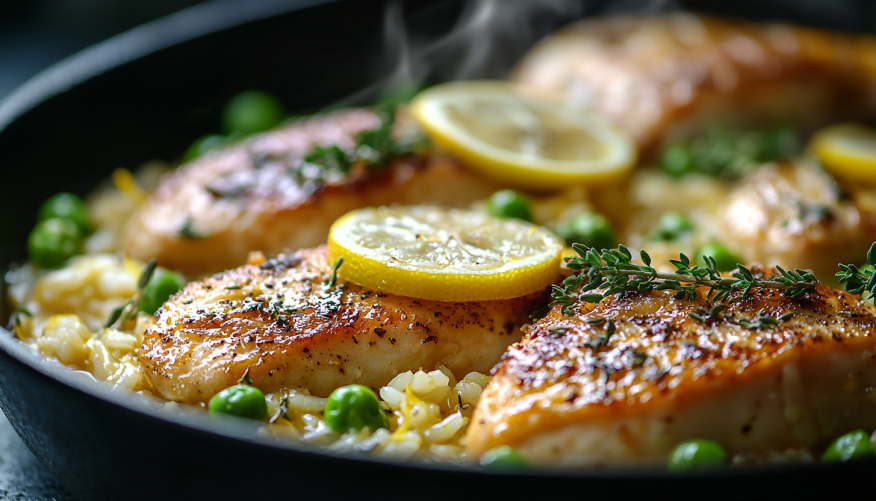 Хотите приготовить что-то на ужин, но возиться нет желания? Предлагаем создать целый ужин в одной сковороде. Курица с гарниром и соком лимона — идеальный рецепт. Сочная грудка с ярким цитрусовым ароматом отлично сочетается с любым готовым гарниром, будь то рис, кускус или овощная смесь.