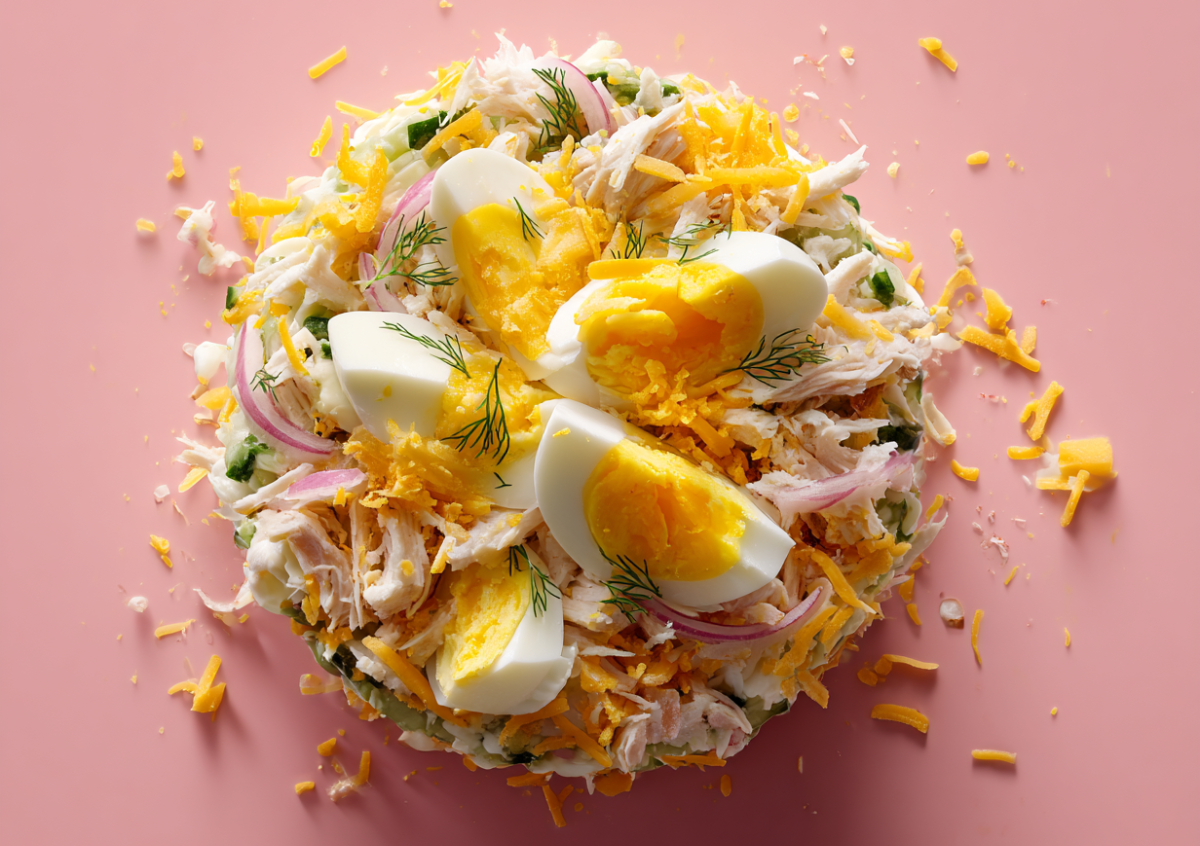 Салат «О-ля-ля» — это идеальный вариант, когда хочется приготовить что-то простое, быстрое и при этом невероятно нежное. В этом слоеном салате нет тяжелых овощей, только легкие компоненты, которые прекрасно гармонируют с кислинкой яблока.