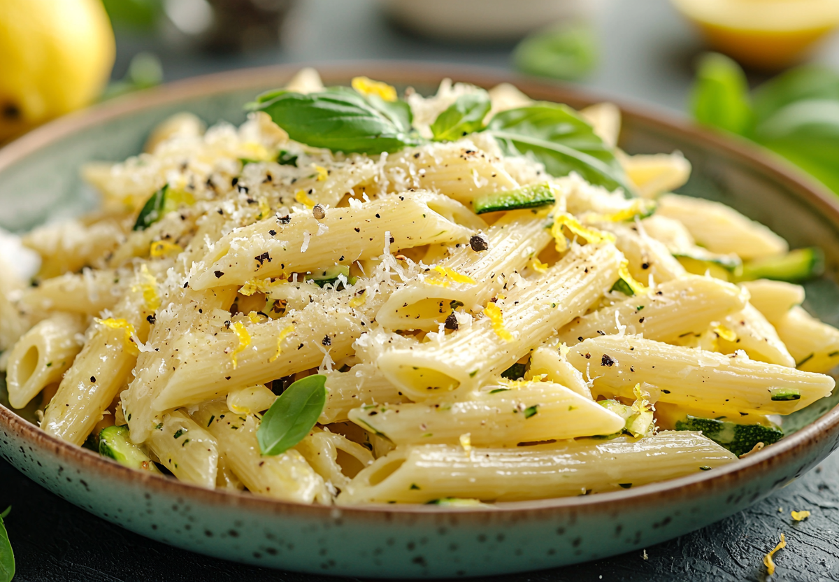 Параллельно отварите 250 г макарон пенне, сохранив половник жидкости от варки. Выложите пасту к цукини, добавьте пару ложек пастовой воды и хорошо перемешайте на небольшом огне. Снимите с огня, вмешайте горсть тертого пармезана, который окончательно свяжет все компоненты. Подавайте немедленно, украсив лимонной цедрой и свежемолотым черным перцем. Этот рецепт — доказательство того, что настоящая итальянская кухня в ее гениальной простоте.