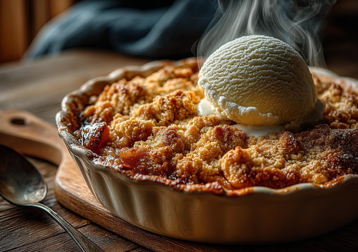 Подавать крамбл лучше теплым. Положите рядом шарик пломбира или просто полейте густыми сливками. И никакого чувства вины за потраченное время, потому что на самом деле вы провели у плиты не больше получаса, а впечатление создали, будто колдовали весь вечер.