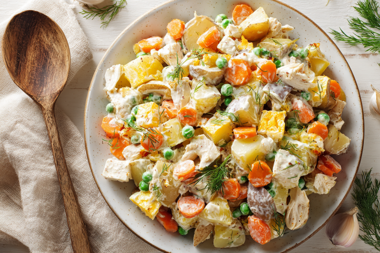 Есть блюда, которые остаются символами праздников, и оливье с говядиной — одно из них. Это более насыщенный вариант любимого салата. Его подают на новогодний стол, готовят на семейные ужины и всегда делают заранее — чтобы он успел настояться и стал еще вкуснее.