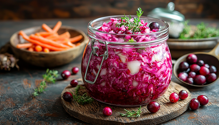 Факт: клюква богата природными консервантами, поэтому такая капуста хранится дольше обычной и не темнеет.