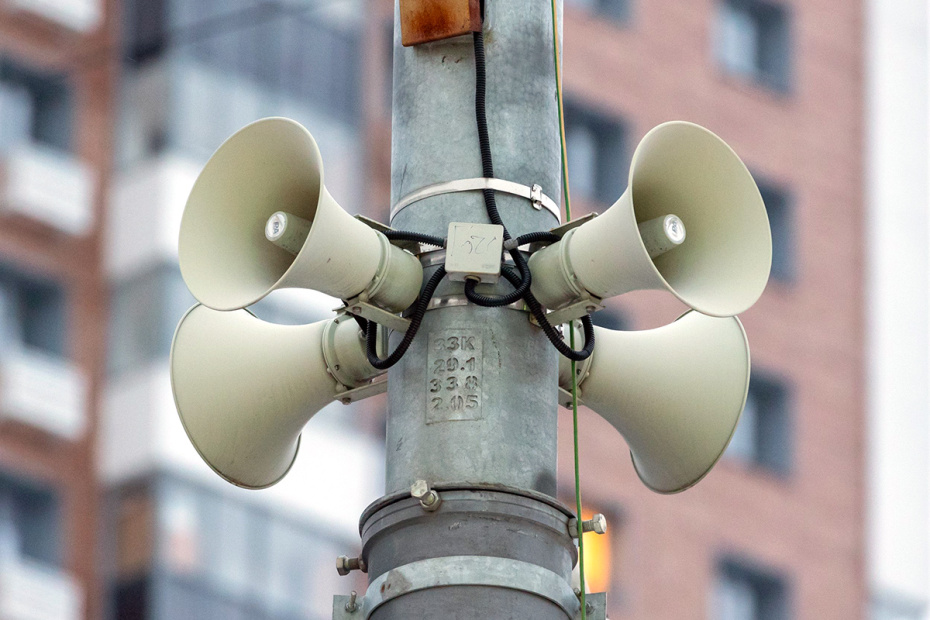 звуковые сирены на улицах и в зданиях;