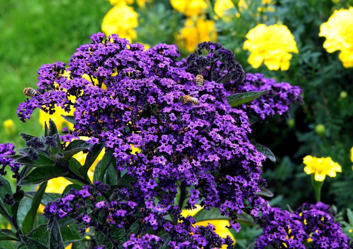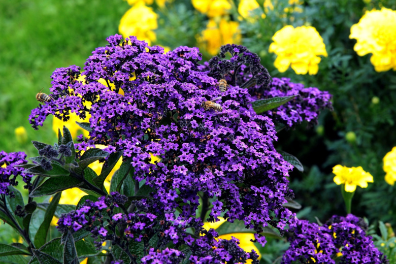 Гелиотроп (Heliotropium arborescens), сорт «марин» — аромат ванили и миндаля, насыщенный и бархатистый. Цветет все лето, высота — 40–60 см. Именно эту ноту парфюмеры называют «пудровой сладостью».