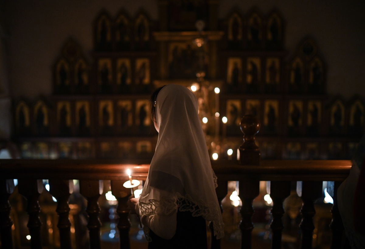Прихожане во время богослужения