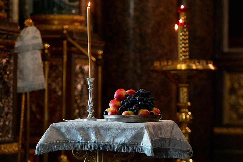 Фрукты, принесенные для освящения на богослужении к празднику Преображения Господня