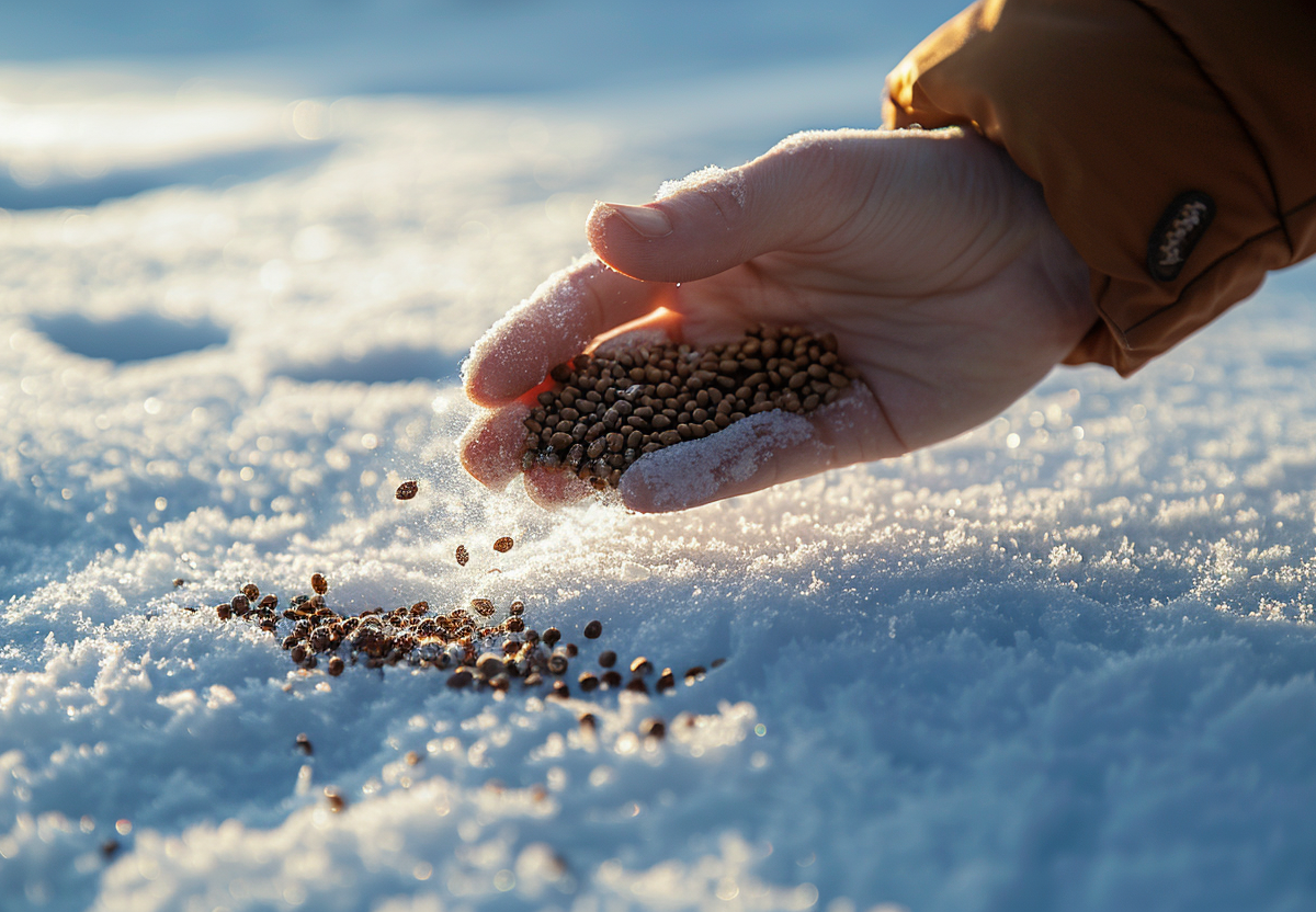 Зимой (декабрь-январь) посев ведется прямо по снегу. Выберите день, когда снежный покров уже устойчив, но снег достаточно рыхлый и пушистый. Хорошо утрамбуйте снег на месте будущей клумбы, чтобы талые воды весной не смыли семена. Затем прямо на снег рассыпьте семена. Для мелких семян, чтобы распределить их равномернее, смешайте их с песком. Сверху можно аккуратно прикрыть посевы слоем снега. Тая, снег втянет семена в почву на нужную глубину и обеспечит им необходимую влагу.