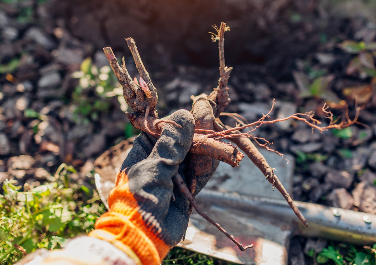 Сначала подготовьте саженец: осмотрите корни, удалите поврежденные участки, обмакните в раствор фунгицида на 30 минут. За это время выкопайте яму глубиной 50–60 см. Если земля покрыта снегом, аккуратно уберите его. На дно уложите дренаж — керамзит или битый кирпич. Затем добавьте питательную смесь: перегной, дерновую землю и песок в пропорции 2:2:1. Важно: грунт должен быть теплым, его можно заранее занести в помещение.