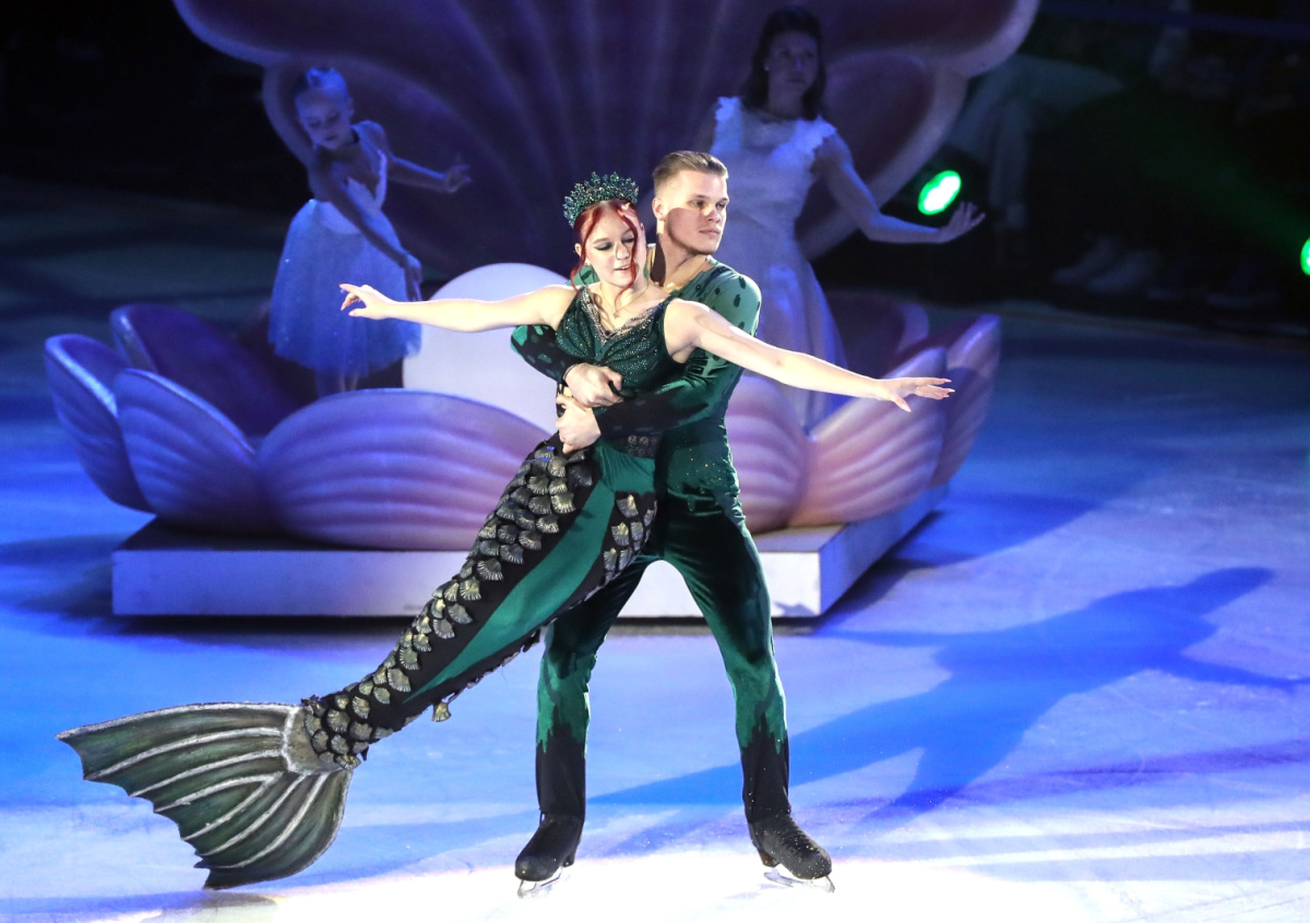 По сюжету юная Ула, роль которой играет спортсменка, спасает во время кораблекрушения принца Андриана, его сыграл двукратный чемпион России Евгений Семененко. Отца Русалочки, покровителя подводного царства Нептуна, в шоу играет Евгений Плющенко.