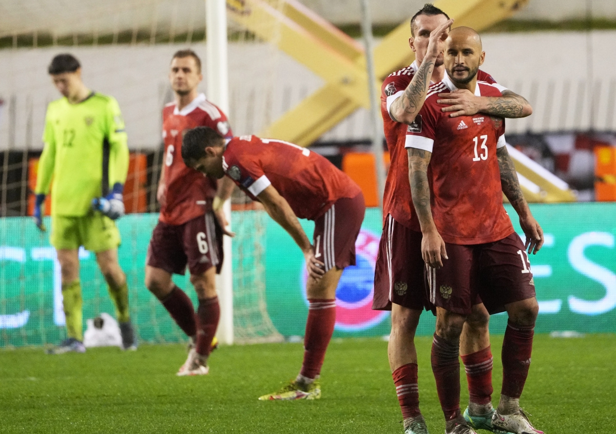 Игроки сборной России после окончания матча 10-го тура отборочного этапа чемпионата мира по футболу 2022 между сборными Хорватии и России Игроки сборной России после окончания матча 10-го тура отборочного этапа чемпионата мира по футболу 2022 между сборными Хорватии и России Фото: Александр Вильф/РИА Новости