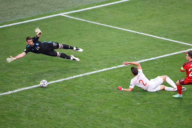 У испанцев был предсказуемый план на игру: как можно быстрее забить и спокойно играть по счёту, заполняя при удобном случае свободные зоны в обороне вынужденного отыгрываться соперника. Уже на девятой минуте план начал работать. Жорди Альба отлично поймал на подъём вылетевший из штрафной мяч, а Денис Закария неуклюже подставил ногу. Мяч шёл в руки вратарю, но из-за касания защитника изменил направление и влетел в сетку. Ну что за матч на этом Евро без автогола?