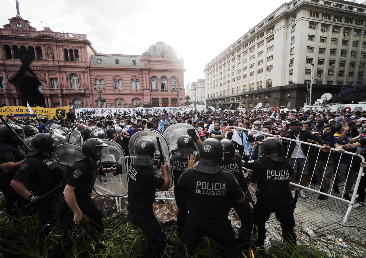 В центре Буэнос-Айреса происходят столкновения между фанатами экс-игрока и тренера сборной Аргентины по футболу Диего Марадоны и полицейскими. Инциденты зафиксированы на перекрёстке проспектов Нуеве-де-Хулио и Авенида-де-Майо.
