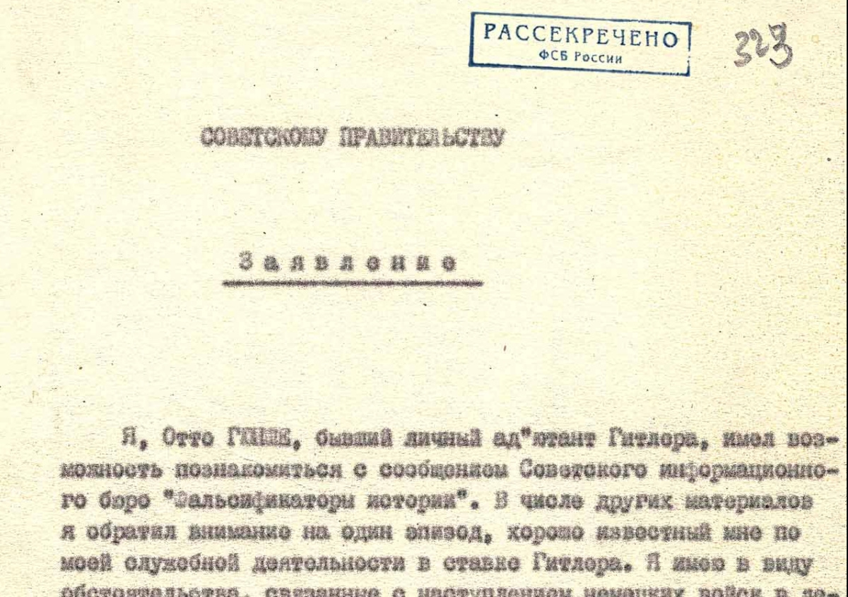 Попавший в плен Советской армии в апреле — мае 1945 года бывший адъютант Гитлера Отто Гюнше оставил свидетельство того, какое влияние оказал СССР на битву при Арденнах, говорится в секретных материалах, опубликованных Федеральной службой безопасности (ФСБ) России. Он дал показания о событиях в последние месяцы Великой Отечественной войны.