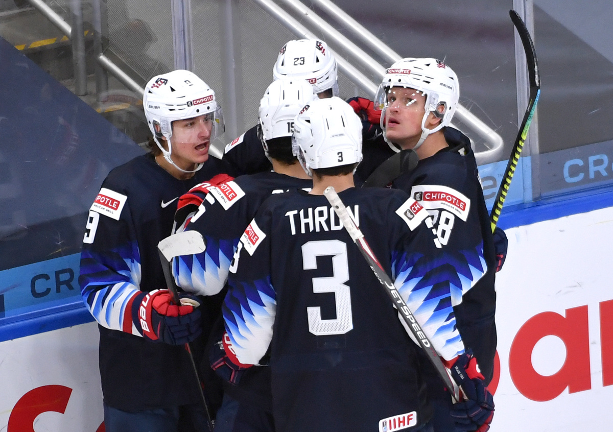В игре против словаков, которая состоялась в Эдмонтоне, у американцев шайбы забрасывали Артур Калиев (11-я минута), Джон Фариначчи (32-я, 56-я), Коул Кофилд (37-я) и Мэттью Бенирс (59-я), у европейцев отличились Матей Каслик (39-я) и Доминик Сойка (50-я).