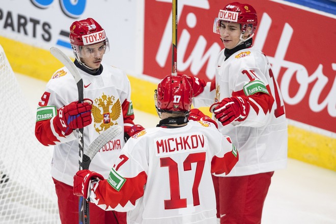 У россиян отметились Фёдор Свечков и Матвей Мичков, забросивший две шайбы.