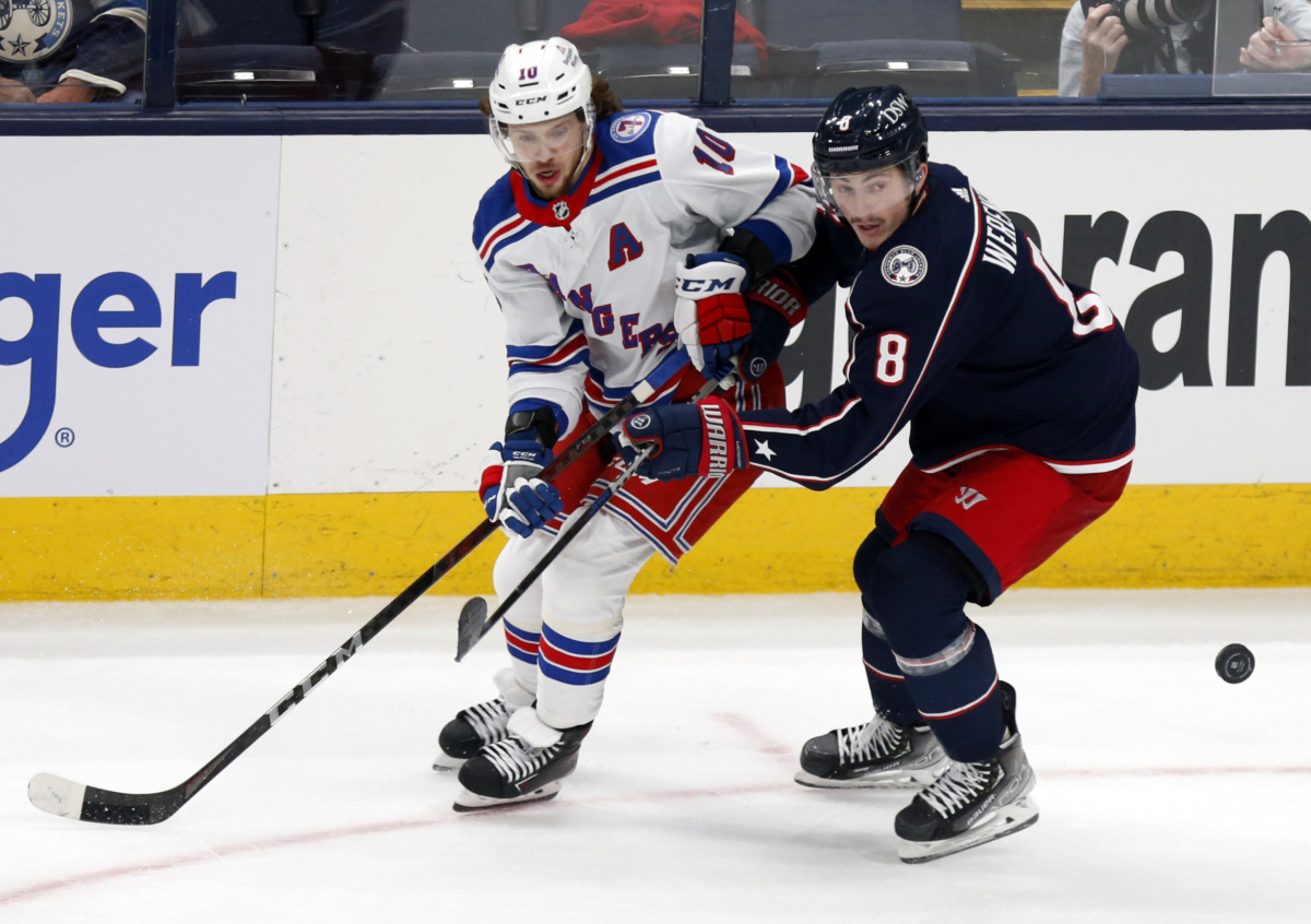 Встреча между «Блю Джекетс» и «Рейнджерс» завершилась со счётом 3:5. В составе гостей дублями отметились Артемий Панарин (18-я и 29-я минуты) и Крис Крайдер (28-я и 41-я). Ещё один гол на счету Джейкоба Трубы (29-я).