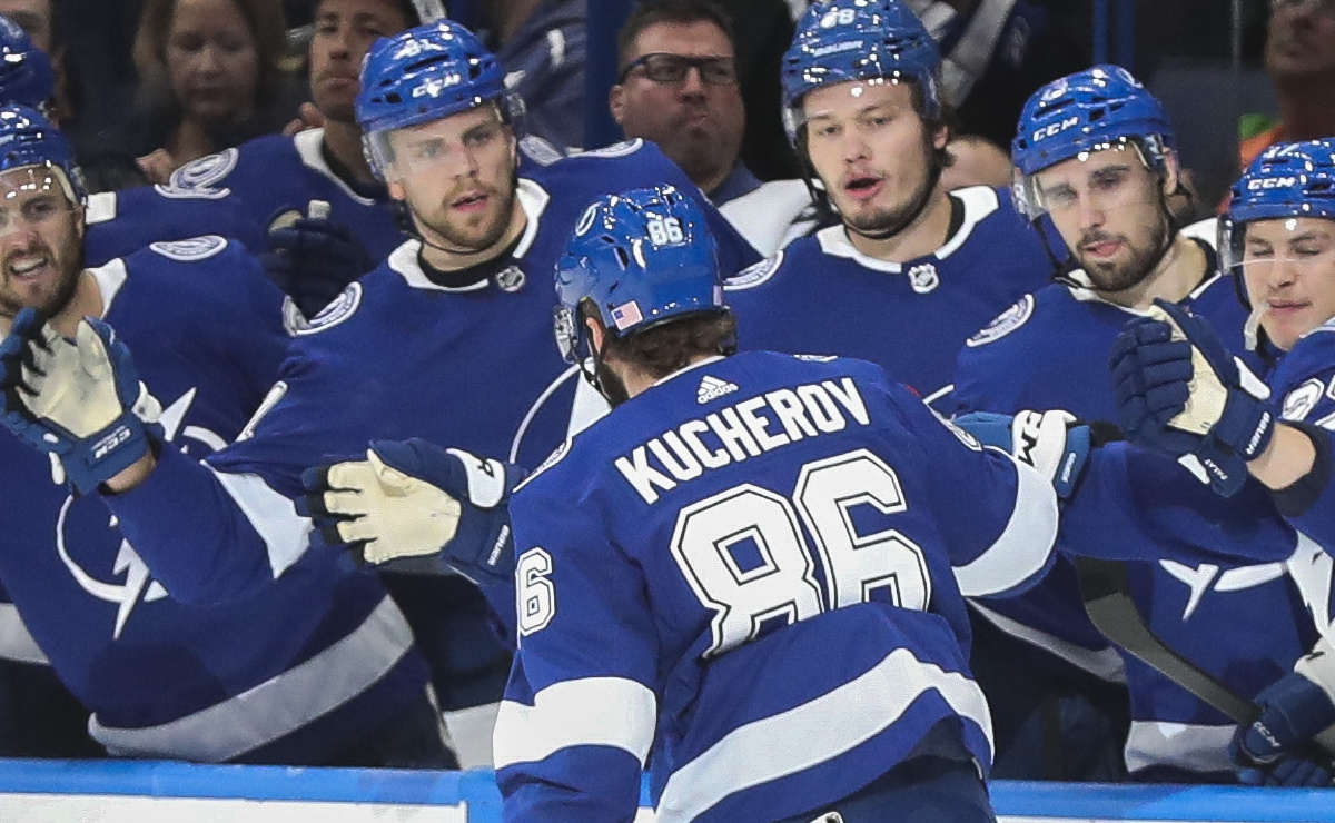 В сезоне-2019/20 россиянин сыграл 18 матчей за «Тампу» и набрал 18 очков (шесть заброшенных шайб и 12 результативных передач). В предыдущем сезоне Кучеров набрал 128 очков (41 гол и 87 передач) и стал самым результативным игроком за последние 23 года по количеству баллов.