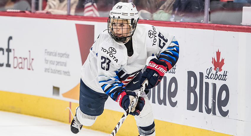 Встреча завершилась со счётом 0:10. Шайбы забросили Аманда Кессел, Кайла Барнс, Кендолл Койн (дубль), Меган Бозек, Ли Стеклейн (дубль), Хилари Найт, Брианна Деккер и Джесси Комфер.