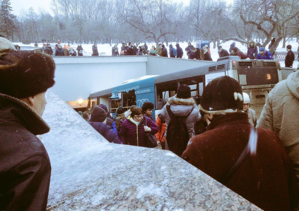В Москве пассажирский автобус протаранил толпу людей и съехал в подземный переход, сообщает РЕН ТВ.