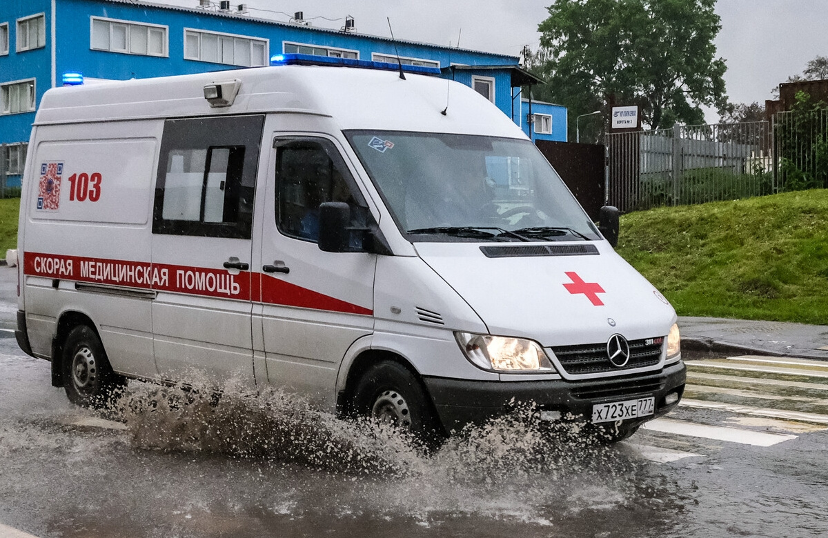 Автомобиль с людьми загорелся в результате крупного ДТП в Москве