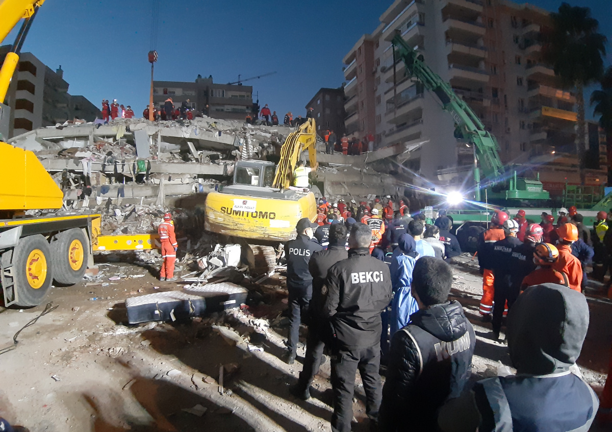 Вице-президент Фуат Октай заявил, что 26 сильно повреждённых зданий в Измире будут срочно снесены. 2076 сотрудников поисково-спасательных служб продолжают работу на обломках восьми зданий.