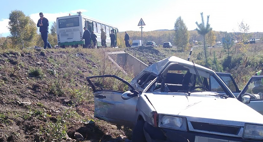 В Башкирии автобус, перевозивший детей, столкнулся с легковой машиной. Пассажир автомобиля погиб, водитель госпитализирован.