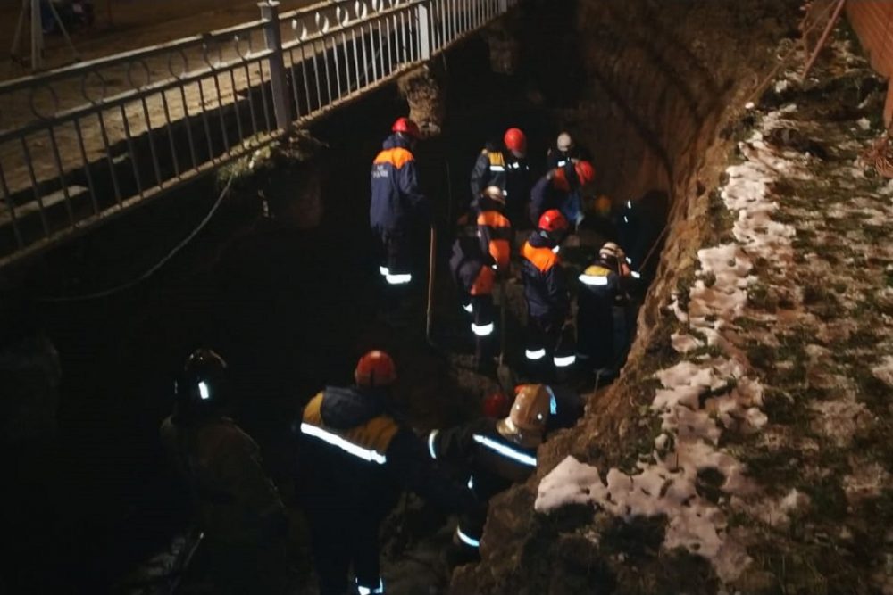 В Екатеринбурге на пересечении улиц Мехренцева и Краснолесья два коммунальных работника попали под обрушение грунта. Пожарно-спасательные подразделения принимают участие в поисках, — передаёт сообщение ведомства ТАСС.