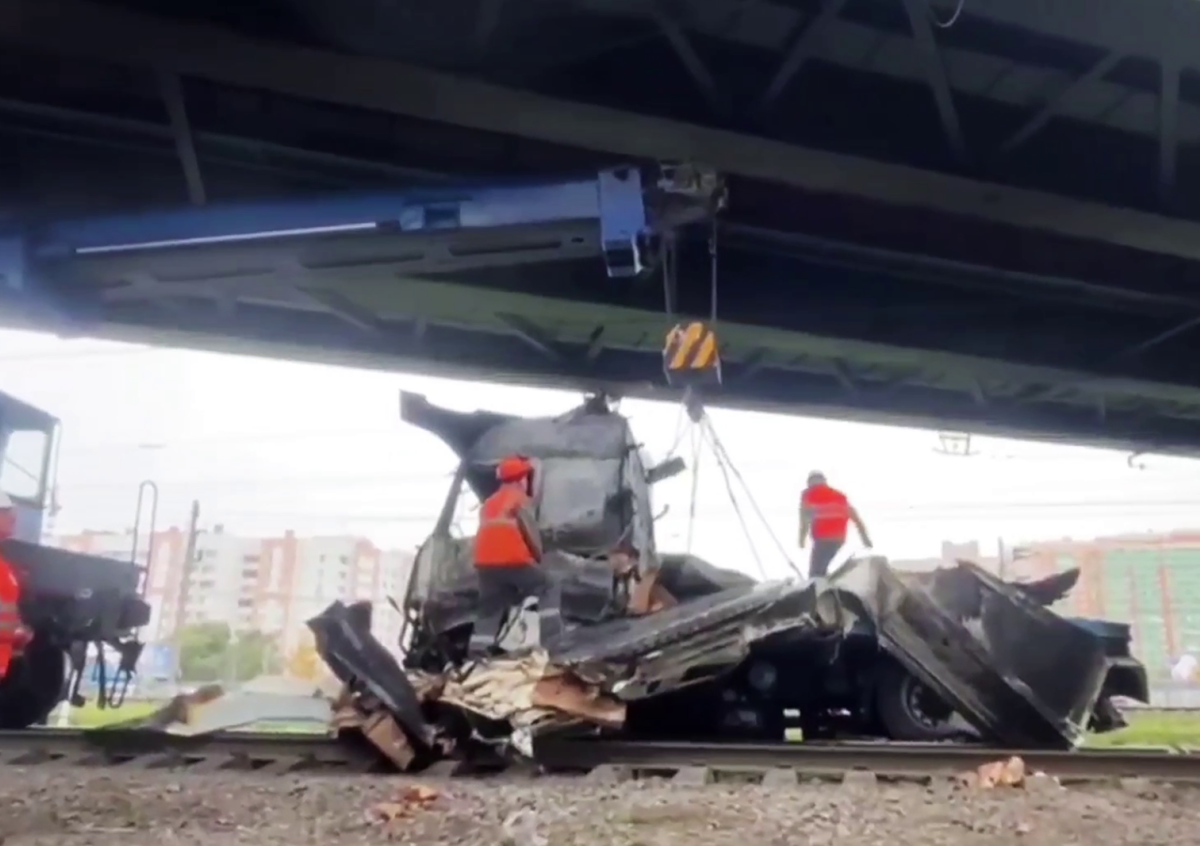 По предварительным данным, известно, что водитель грузовика не справился с управлением, в результате чего фура опрокинулась на виадуке, а кабина с высоты нескольких метров упала на железнодорожные пути и загорелась.