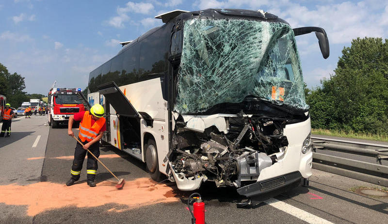 Автобус перевозил 45 детей в возрасте от 3 до 13 лет. В Пикардии произошла поломка, водителю понадобилось заменить колесо. Он остановил автобус на обочине трассы. Его не заметил водитель грузовика, который врезался в автобус. Водитель грузовика задержан, сообщает «Унион».