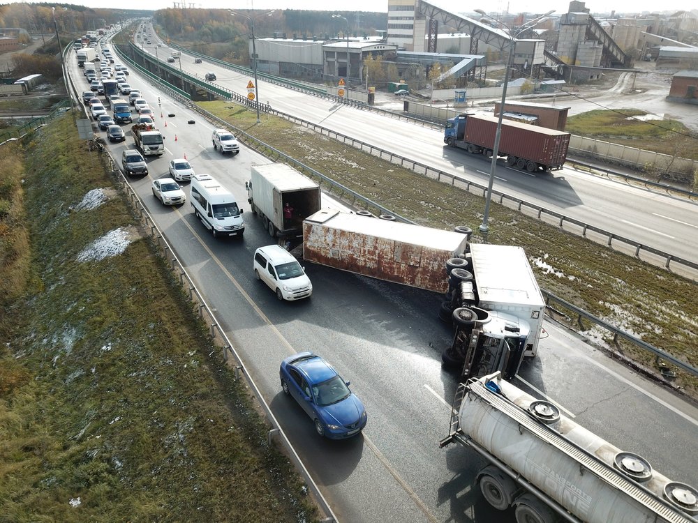 В результате ДТП фура опрокинулась, движение по двум полосам кольцевой автодороги с внешней стороны ограничено. Пострадавших в результате аварии нет, передаёт ТАСС.
