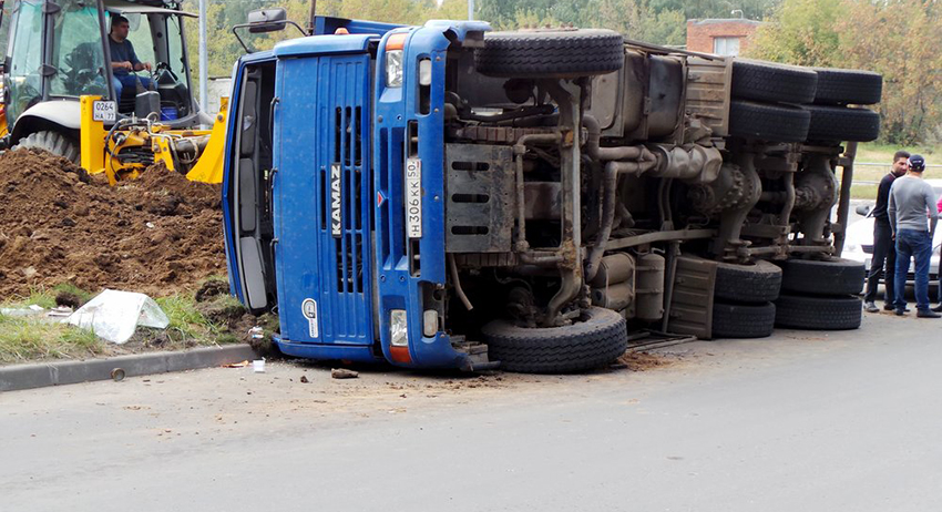 КамАЗ провалился под землю в Москве