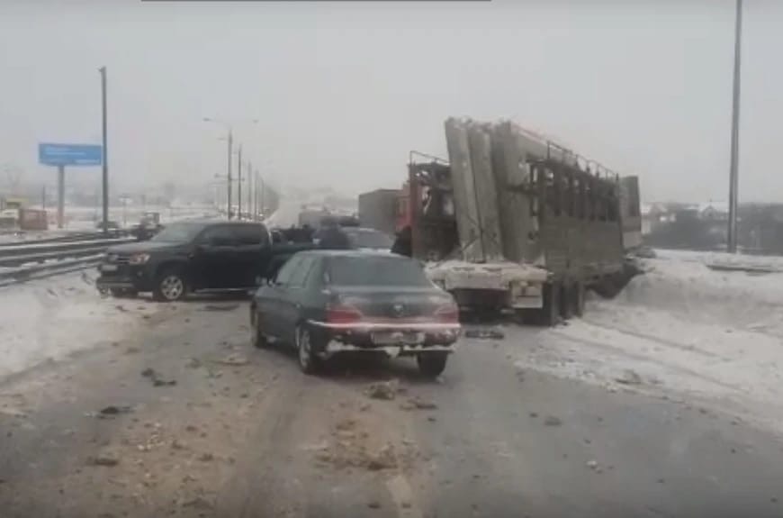 «РИАМО в Подольске» сообщило, что в аварии столкнулись восемь легковых автомобилей и фура, которая спровоцировала ДТП.