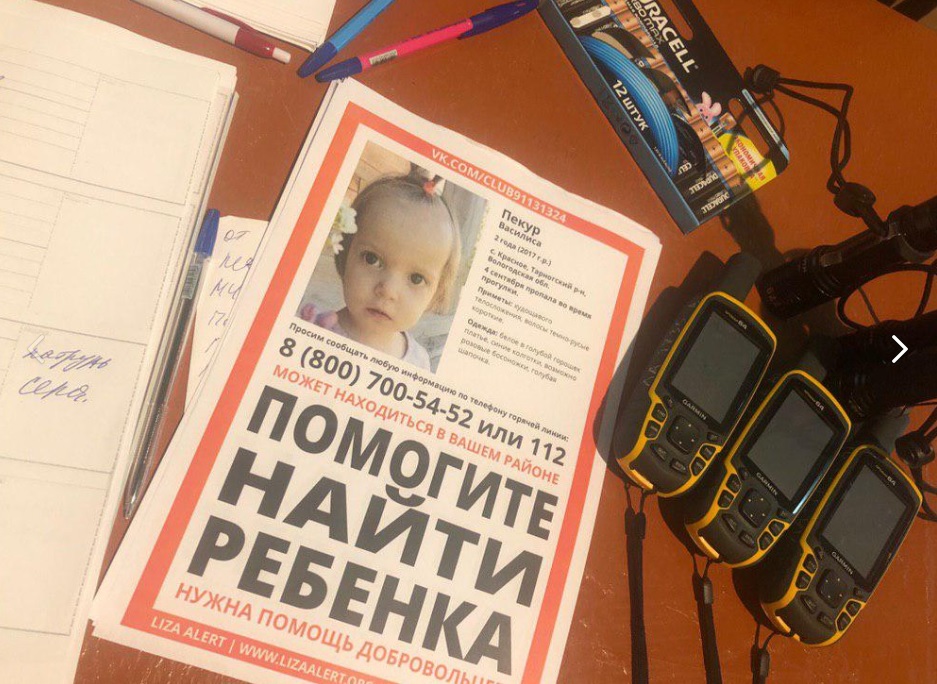 Девочка по имени Василиса пропала утром 4 сентября. Мать оставила её в песочнице вместе со старшими сёстрами — четырёх и шести лет, а сама ушла. Когда вернулась, ребёнка уже не было. Поисковая операция началась уже через несколько часов. Помимо полиции и спасателей, к ней подключились волонтёры из нескольких регионов России, включая отряды «Лизы Алерт». Всего порядка 400 человек.