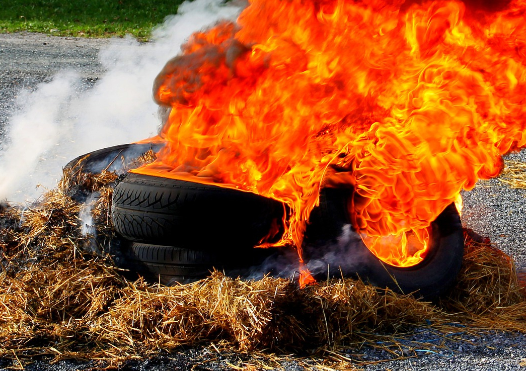 На Урале горящая шина попала в женщину во время фаер-шоу