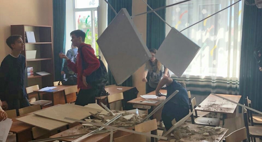 Как пишут пользователи соцсетей, потолок обвалился во время третьего урока, когда в аудитории находились десятиклассники.