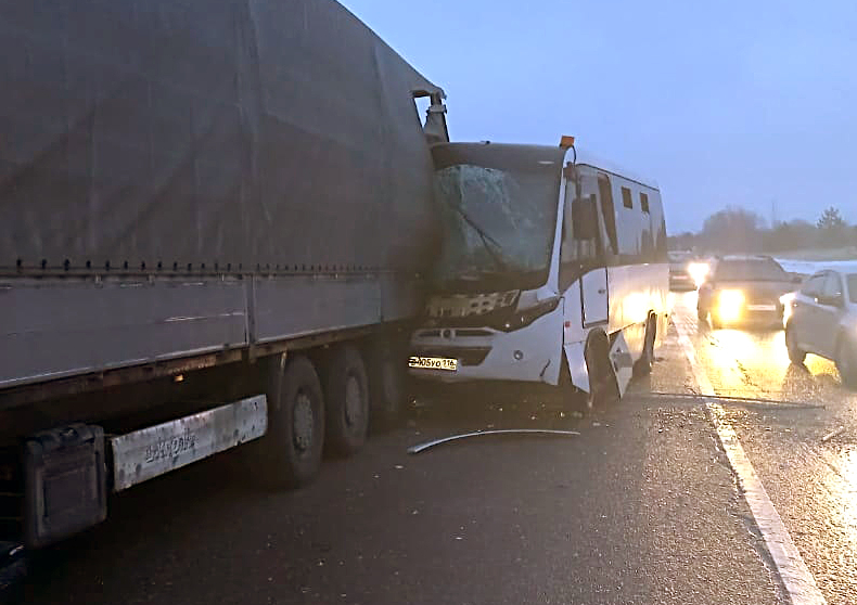 Под Елабугой произошло ДТП с автобусом, в ходе которого пострадал 21 человек, ещё один человек погиб. Как пишет РИА Новости, вахтовый автобус въехал в стоявшую на обочине фуру на девятом километре автодороги Елабуга — Гари — Абалач.